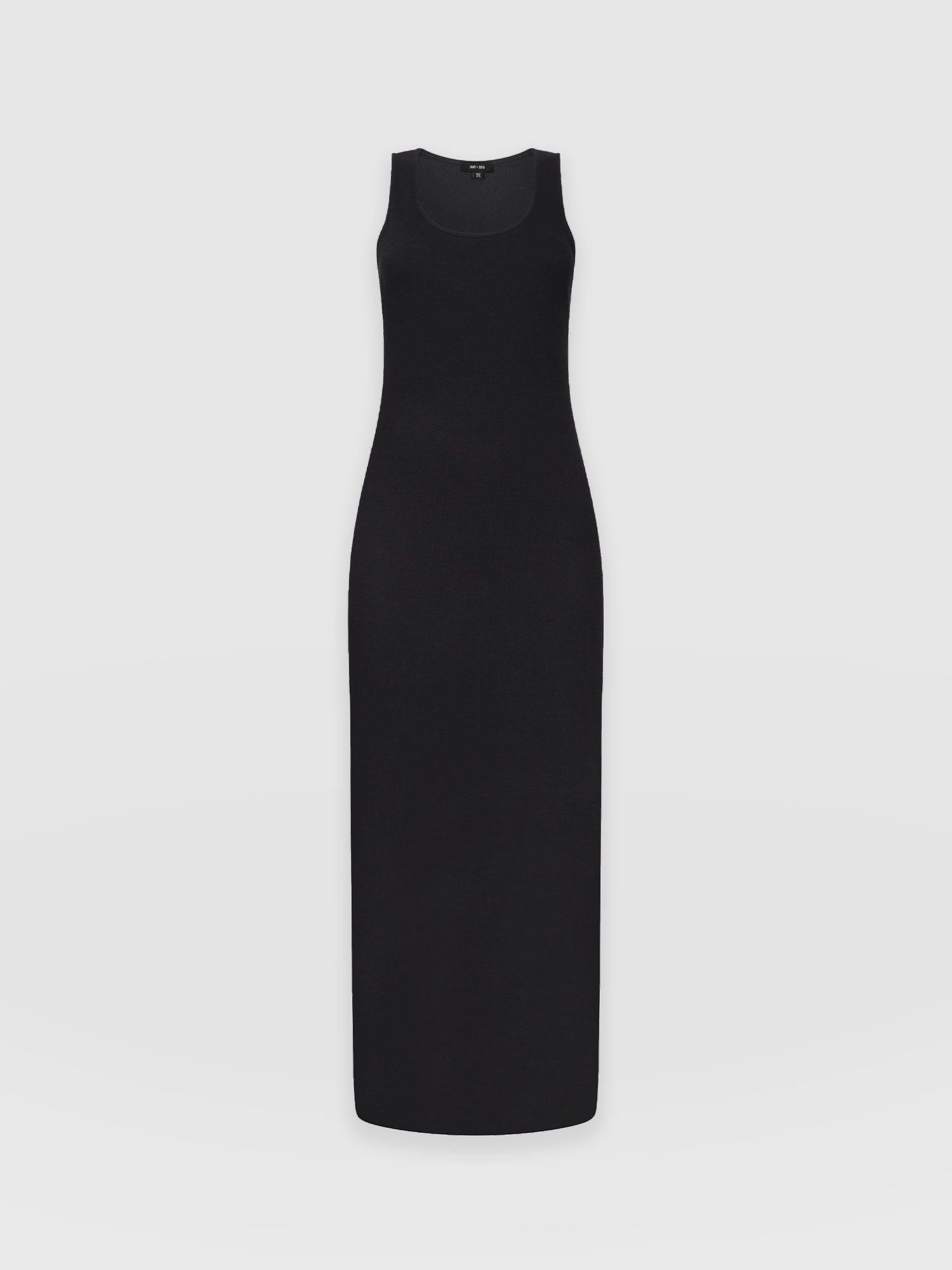 A comfortable cotton maxi dress in black with a gentle rib finish. Designed for a comfortable, figure hugging fit (with a little stretch) and with racerback slits on both sides. Made with the softest, smoothest organic cotton. Each one is finished by hand in our studios in Europe to guarantee the perfect fit and feel that’s true to size. Pair with slides, sandals or sneakers in summer or barefoot when you’re on the beach.