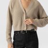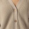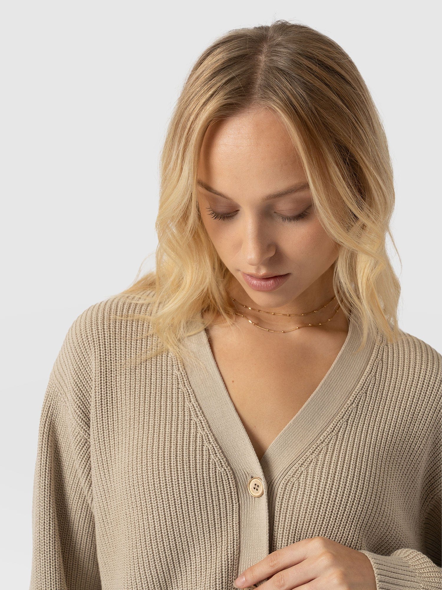 A beautiful cropped cardigan in beige made from the softest organic cotton. With a relaxed, easy feel you can easily layer this on cooler days or warmer evenings. Each one is finished individually by hand in our knitwear studios in Europe with gold button details and discrete stitching. Pair with jeans or leggings for a relaxed look or over pants for something more formal.