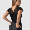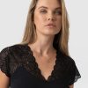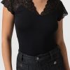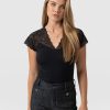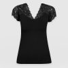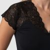 A chic jersey top with delicate lace trim in Black that’s perfect for work or weekends. This elegant top adds a touch of sophistication to any look, featuring a V-neck design that beautifully accentuates the neckline, while the fitted viscose body flatters your shape. Perfect for pairing with both casual and dressy looks, this top is a versatile style suitable for any occasion. Each top is handmade in Europe using a soft and sustainable eco viscose fabric. For a polished and chic look, style it with our Cambridge Tailored Pant and a pair of strappy heels.