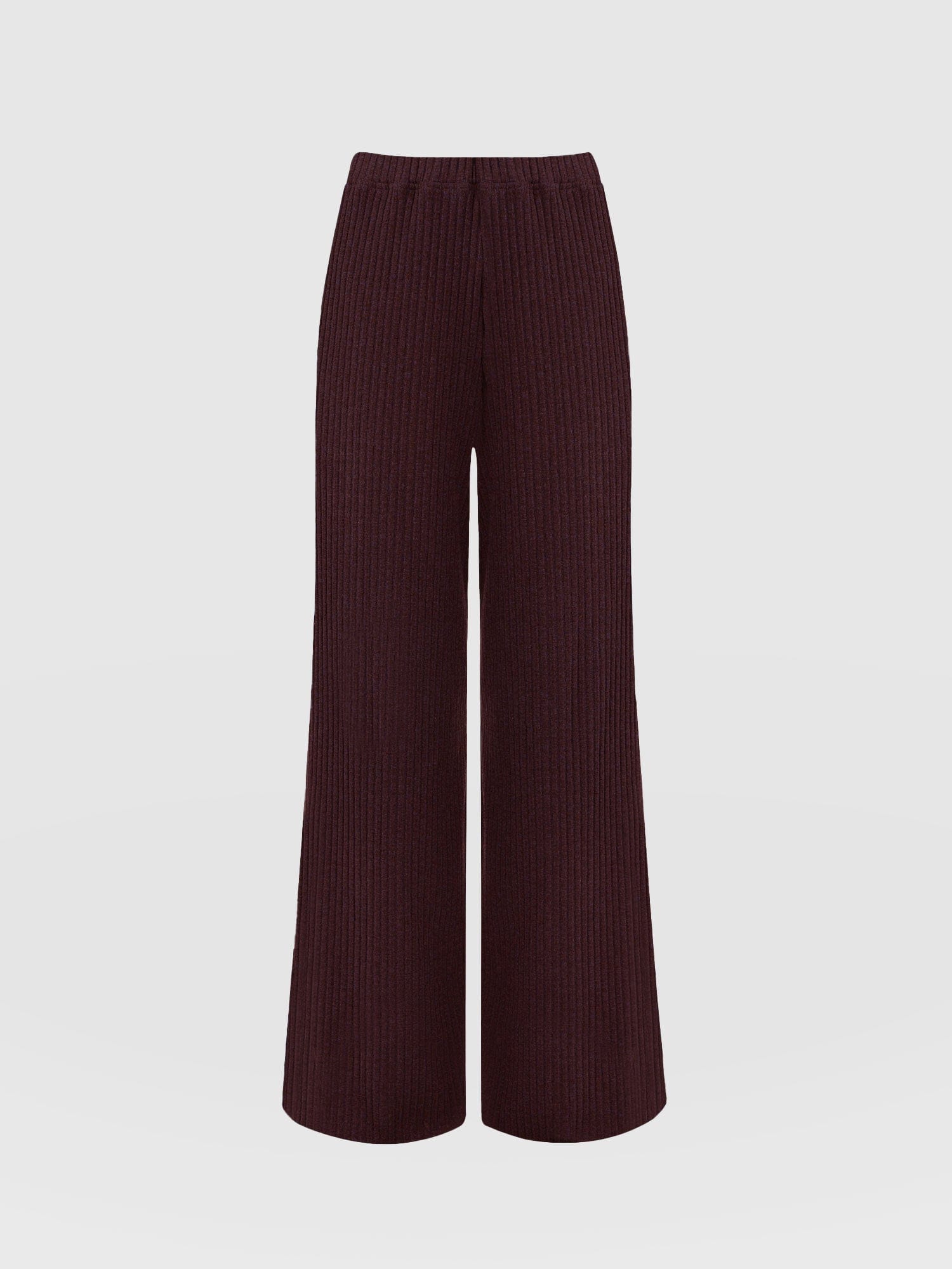 Our Victory Rib Wide Leg Pant in burgundy is a wide-leg pant with rib detailing. It features a comfortable elasticated waist in a soft and smooth viscose that’s infused with a hint of stretch. Style it with our matching Victory Rib Top in burgundy, or wear it alone with a chunky knit and a pair of trainers – or ankle boots for the evening.