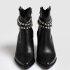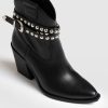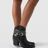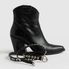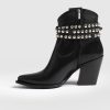 A classic western studded ankle boot in black with a removable belt chain detail that’s pure rock and roll. Each pair is handmade in Italy with the softest, most sustainable leather. We designed these with a chunky heel that’s instantly comfortable the first time you wear them. Edge up any look with a dress, skirts, jeans, or pants for work or on weekends.