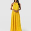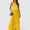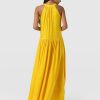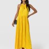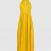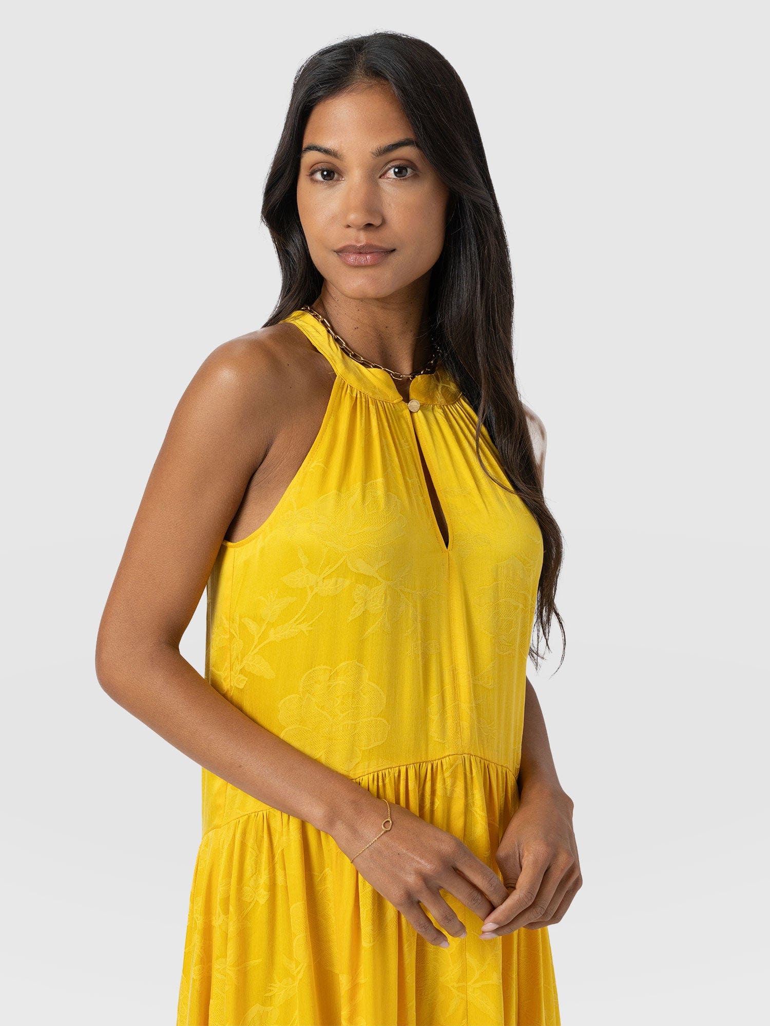 It doesn’t get more elegant than our Zoey Halter Neck Dress in yellow. This beautiful design is handmade by our skilled artisans in Europe using sumptuously soft viscose and is delicately detailed with a floral jacquard. The halterneck bodice features a slim cut-out at the chest before falling into a maxi-length skirt that hangs in gentle pleats. Pair yours with the Bridget Sling Back Heels to complete the look.