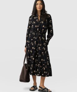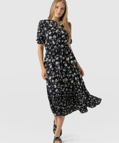 Saint + Sofia Women’s Olivia Zip Up Short Sleeve Dress – Black Spring Floral | Black Spring Floral